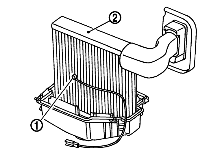 2.サーモアンプ(1)をエバポレーター(2)から取り外す。