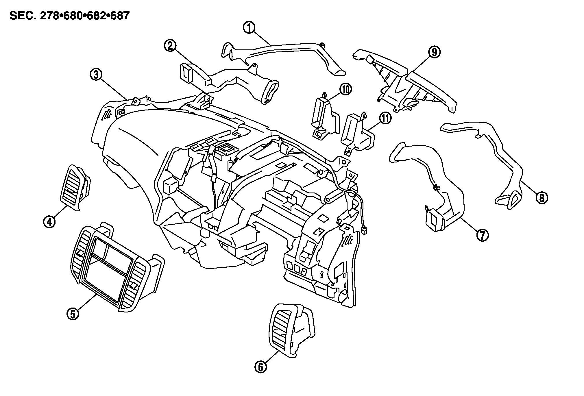 取り外し- 1.インストルメントサイドフィニッシャー(右)を取り外す。「IP インストルメントパネル」のインストルメント ASSYを参照。