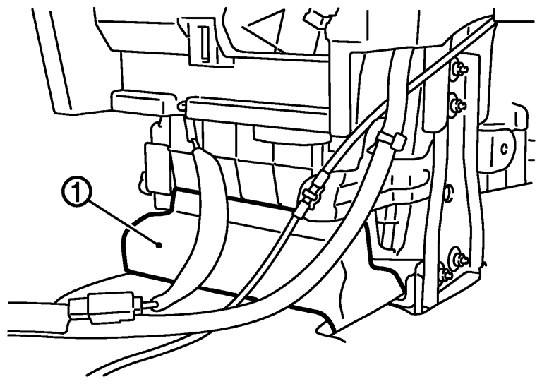 - 6.車両横側からフロアカーペットをめくり、フロントフロアスペーサー(左右)を取り外す。「EI 外装·内装」のフロアトリムを参照。