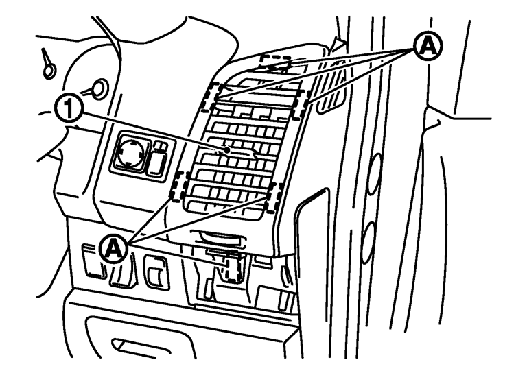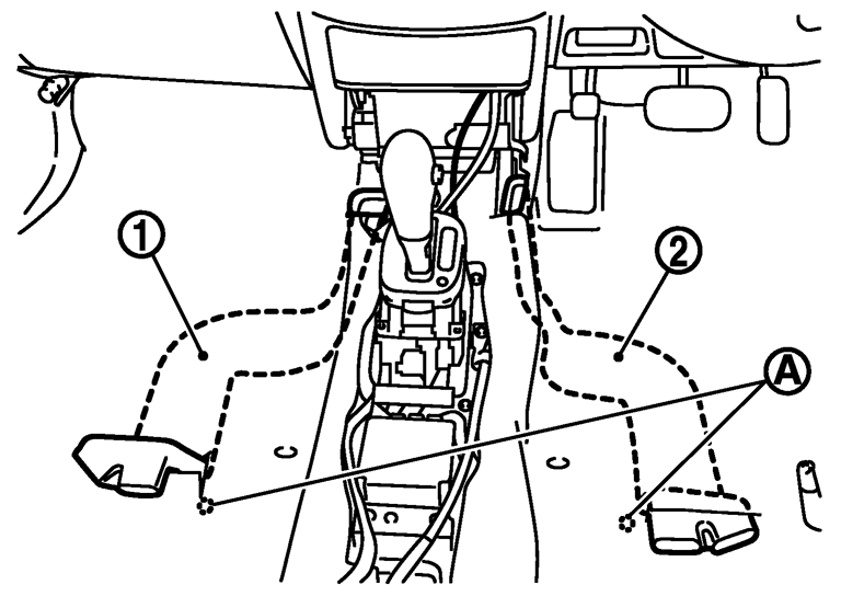 - 2.センターコンソールを取り外す。「IPインストルメントパネル」のインストルメント ASSYを参照。