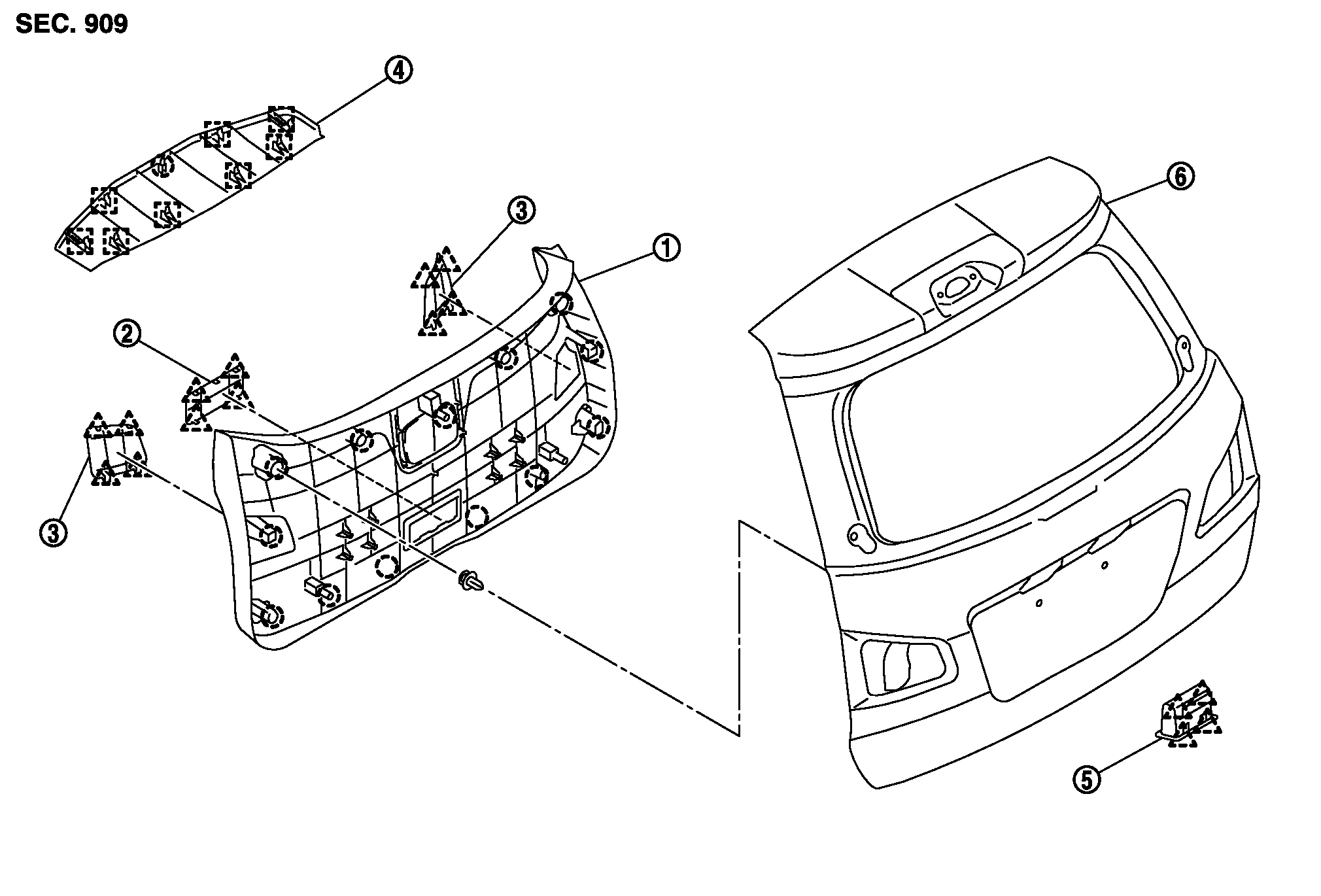 Схема комплектации обшивки задней двери