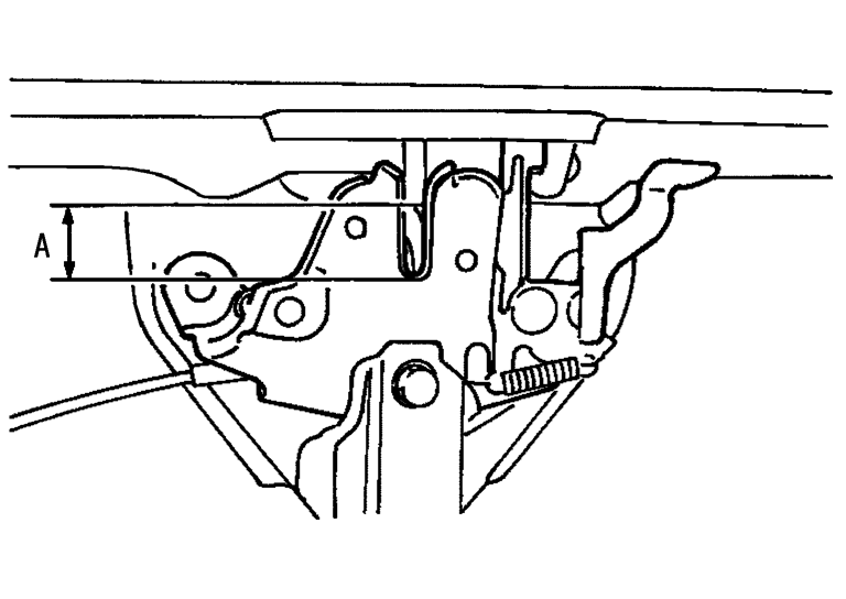 1.フード自重(約200 mmの高さより自然落下させる)のみでフードロックセカンダリーラッチが、セカンダリーストライカーと確実に噛み合うか確認する。