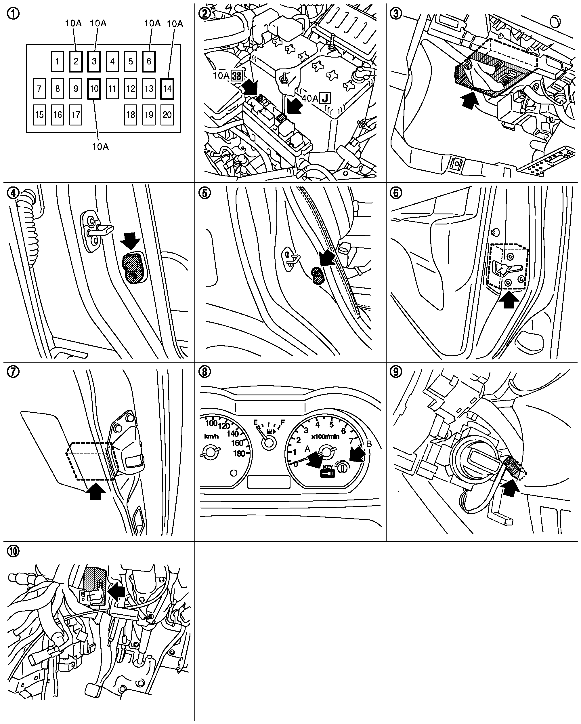 コンビネーションメーター A:キー警告灯 B:ロック警告灯 |