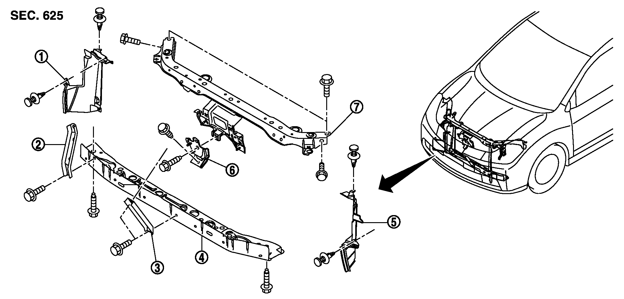 - 7.取付ボルトを外し、ラジエーターコアサポートアッパーセンターを取り外す。