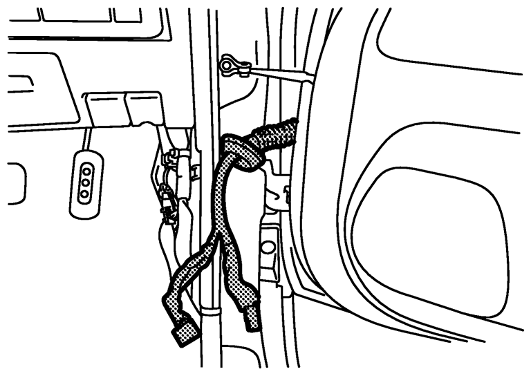 - ドアASSY脱着時、ドア及び車体に傷をつけないようウエスを載せたジャッキなどでドアを支えながら作業すること。