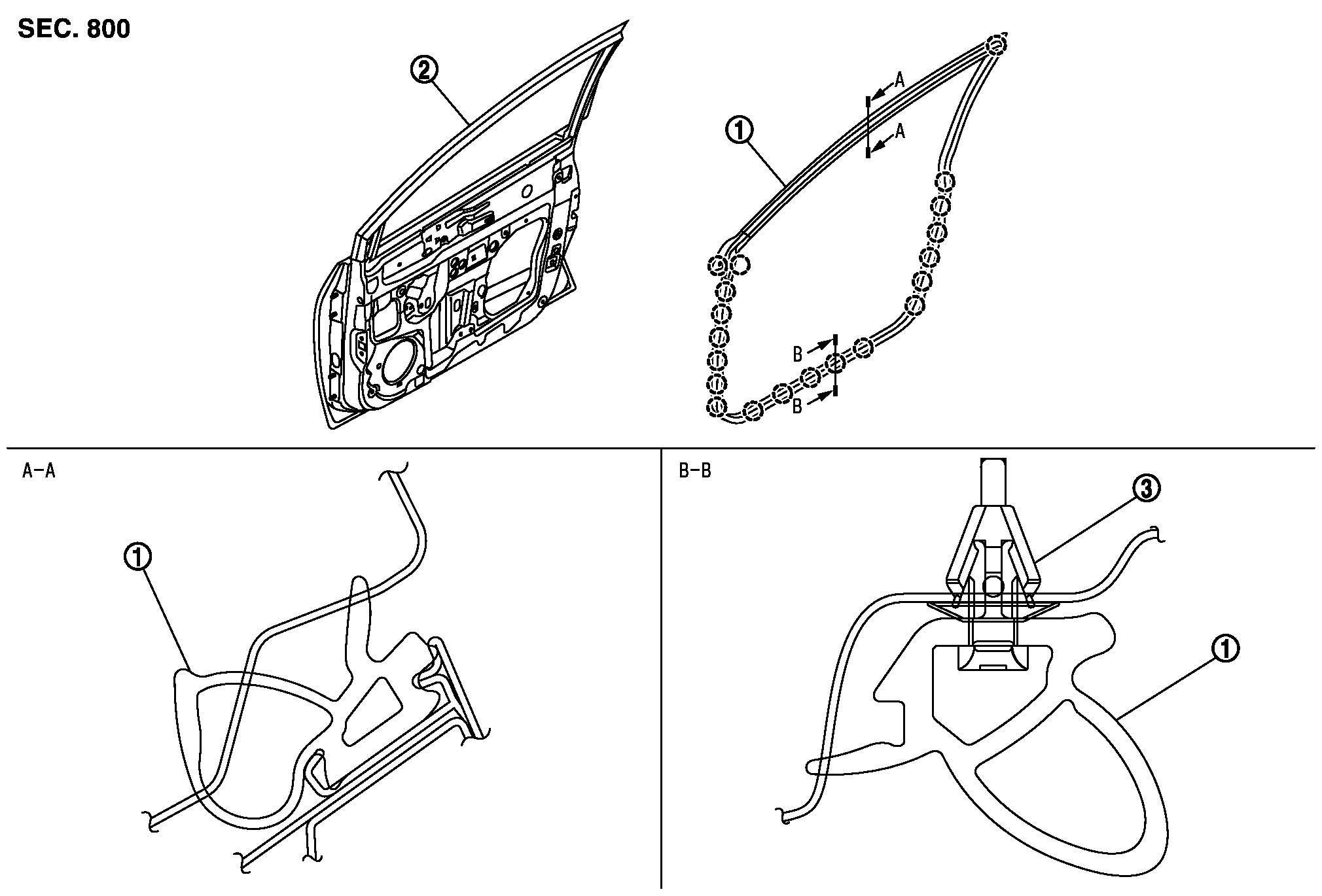 取り外す際は、ウエザーストリップを強い力で引っ張らないこと。