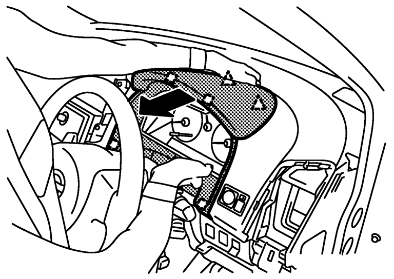 - 5.フロントワイパーウォッシャースイッチを取り外す。「WW ワイパー・ウオッシャー・ホーン」のフロントワイパー·ウオッシャースイッチの取り外し、取り付けを参照。