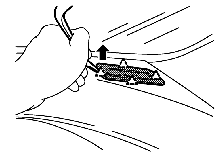 - 車両前側の隙間からリムーバーツール等を差し込み、メタルクリップのかん合を外す。
