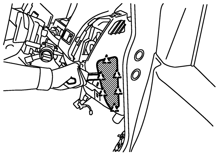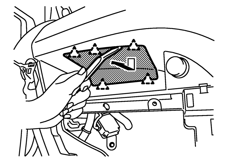 - 助手席エアバッグモジュール取り付けボルト及びコネクターを外す。「SRS SRSエアバッグ」の助手席エアバッグモジュールを参照。