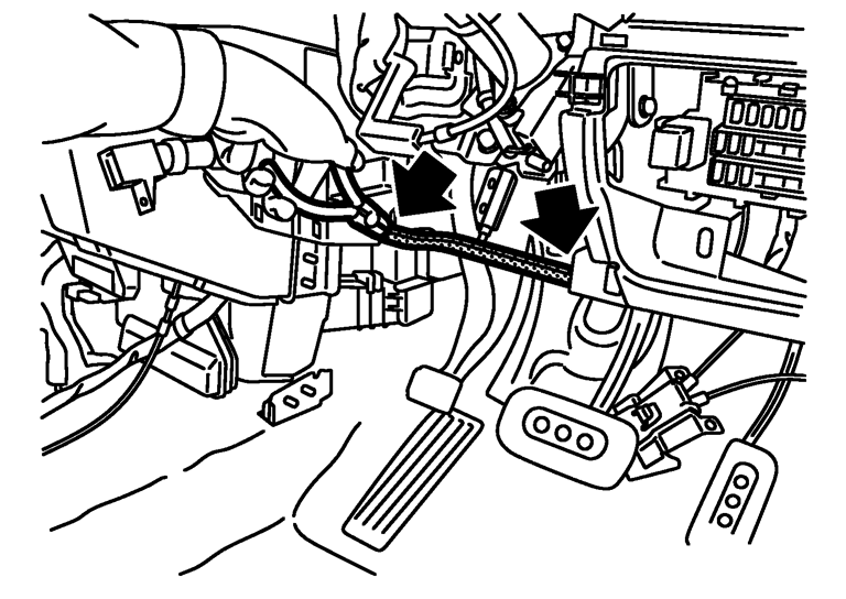 - フードオープナー及びフューエルフィラーリッドオープナー取付ボルトを外す。「BL ボディー・ロック・セキュリティ」のフードロックコントロールの取り外し、取り付けを参照。