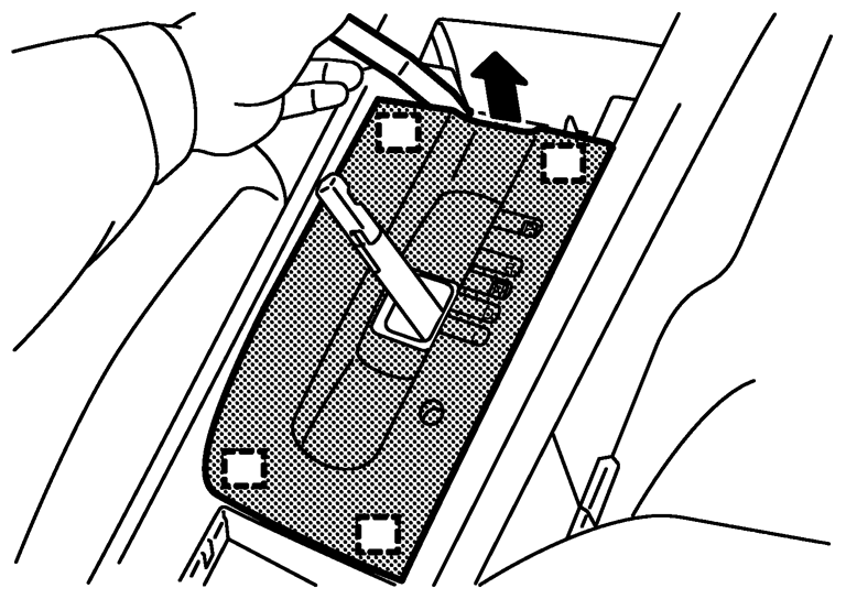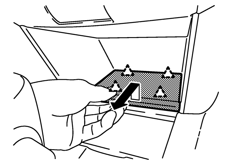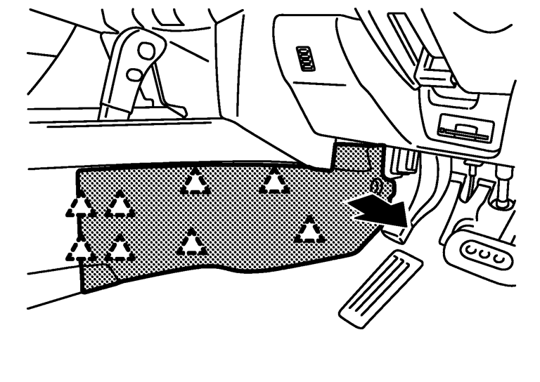 - 車両前側の隙間からリムーバーツール等を差し込み、メタルクリップのかん合を外す。