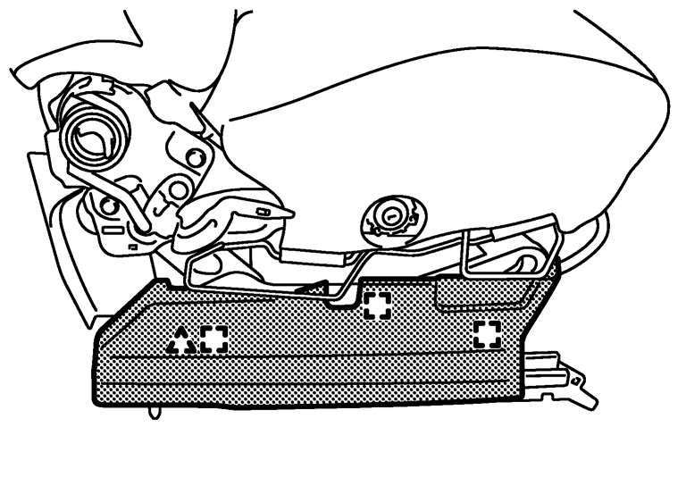 助手席テーブル付きシートは、シートフレーム&アジャスタASSYからシートクッションパッド&トリムを取り外さないこと。