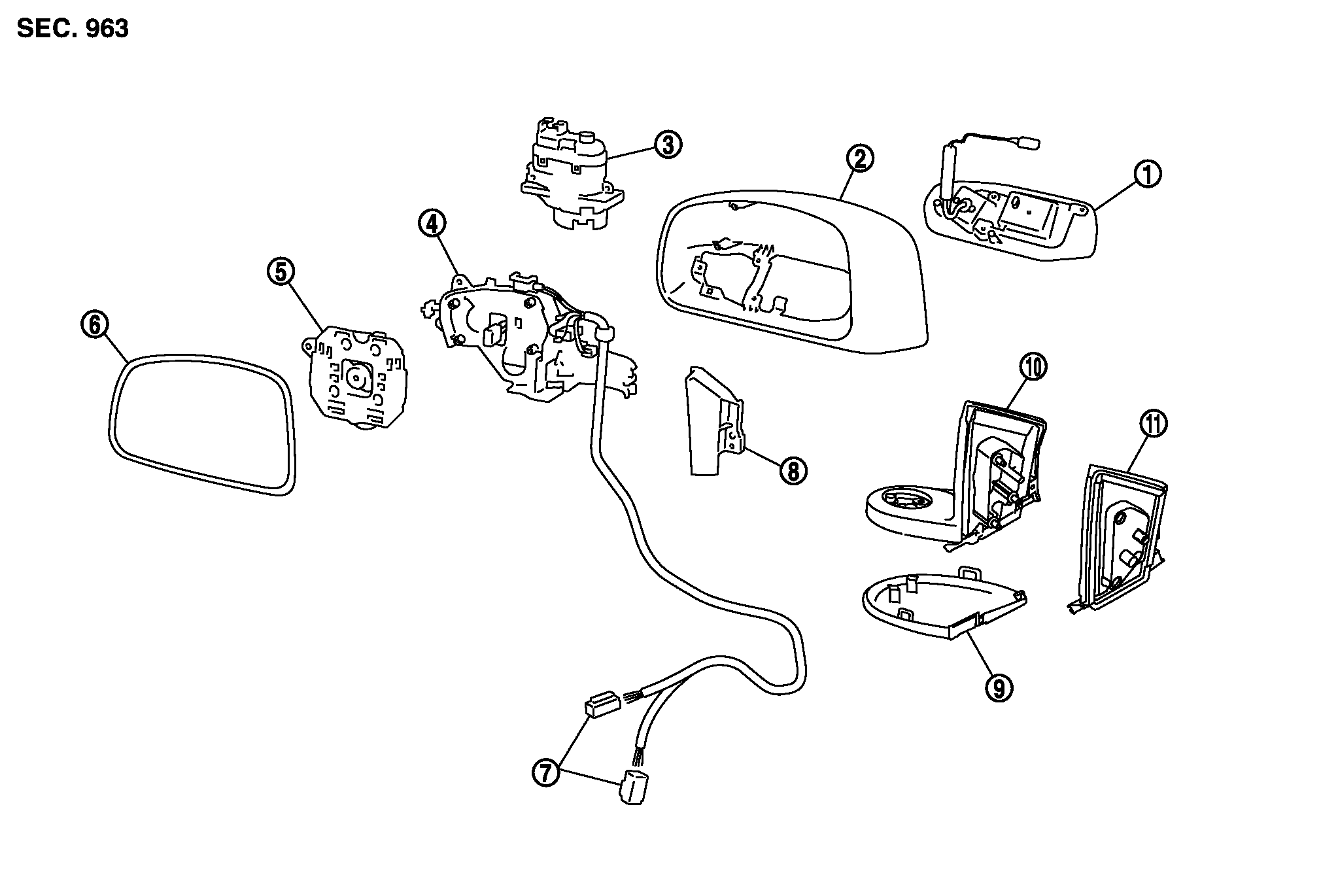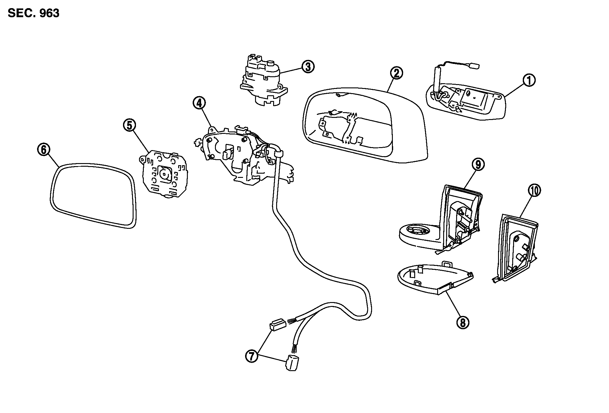 - 8.ヒーターミラーハーネスを鏡面(ミラーボディー)に取り付ける。