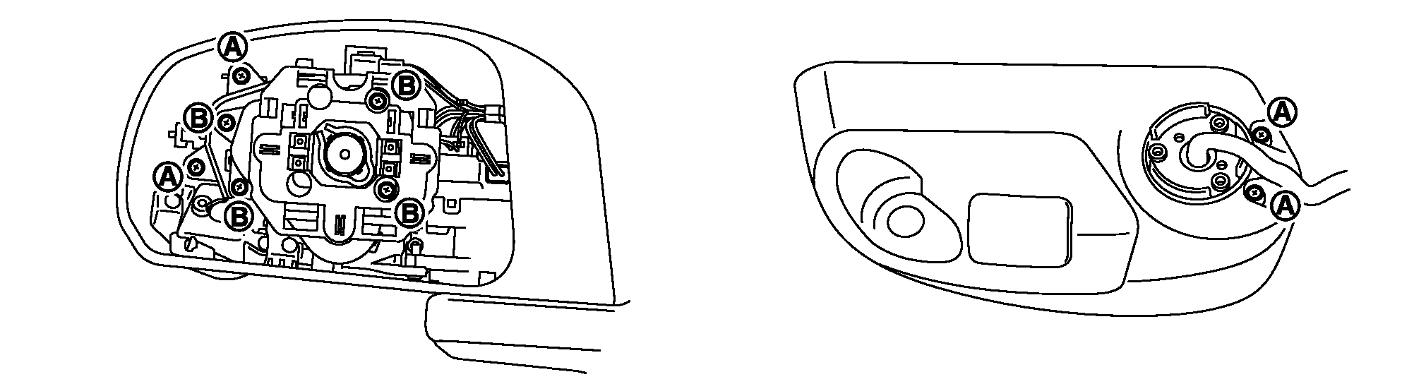 爪を押し上げるときは、無理に1箇所の凹部だけで押し上げようとせず、必ず2箇所の凹部を使用して押し上げること。- 5.ヒーターミラーハーネスを鏡面(ミラーボディー)から外す。(ヒーターミラー付のみ)