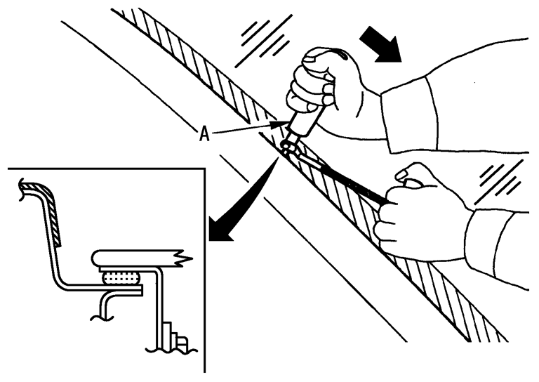 - 2)接着部にウインドシールドカッターを差し込み、刃先をボディーフランジと平行に沿わせて引き、接着剤を切断する。