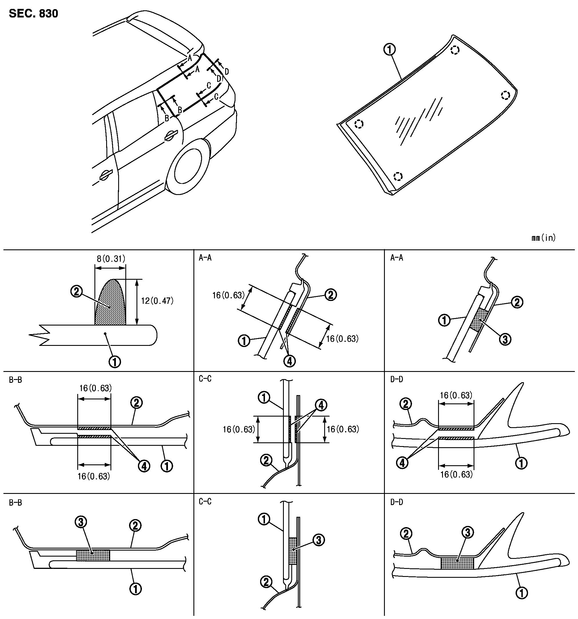 車体から一度取り外したサイドウインドーガラスは再使用しないこと。