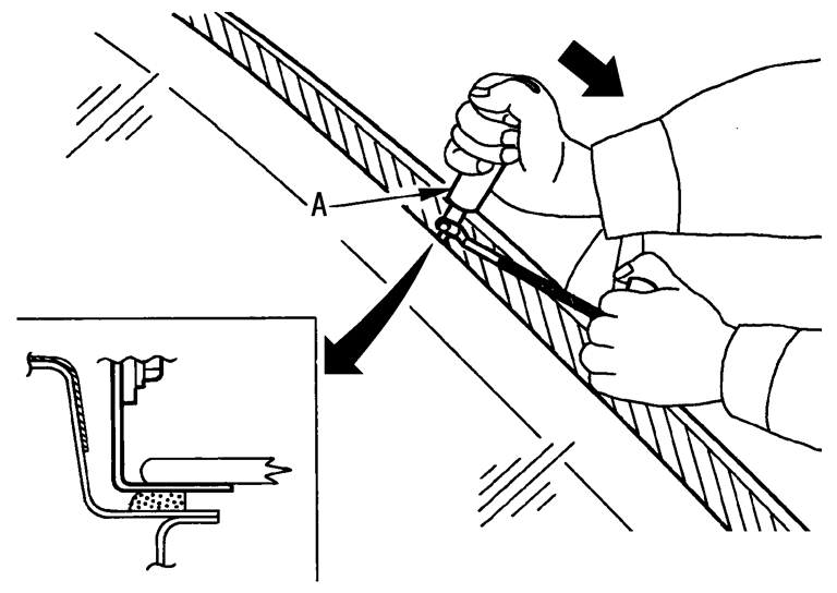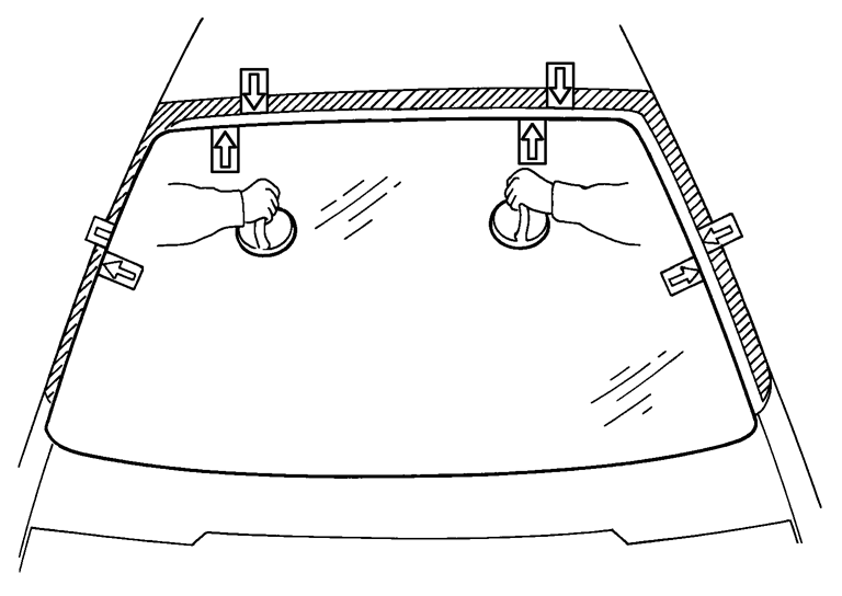 ボディー側の接着面に傷が付いた場合は必ず2液型ウレタン塗料で補修し、ラッカー塗料は使用しないこと。- 2.ガラスを再使用する場合はガラスに残っている接着剤(シーラント)の残片をカッター等で平滑に削り取る。