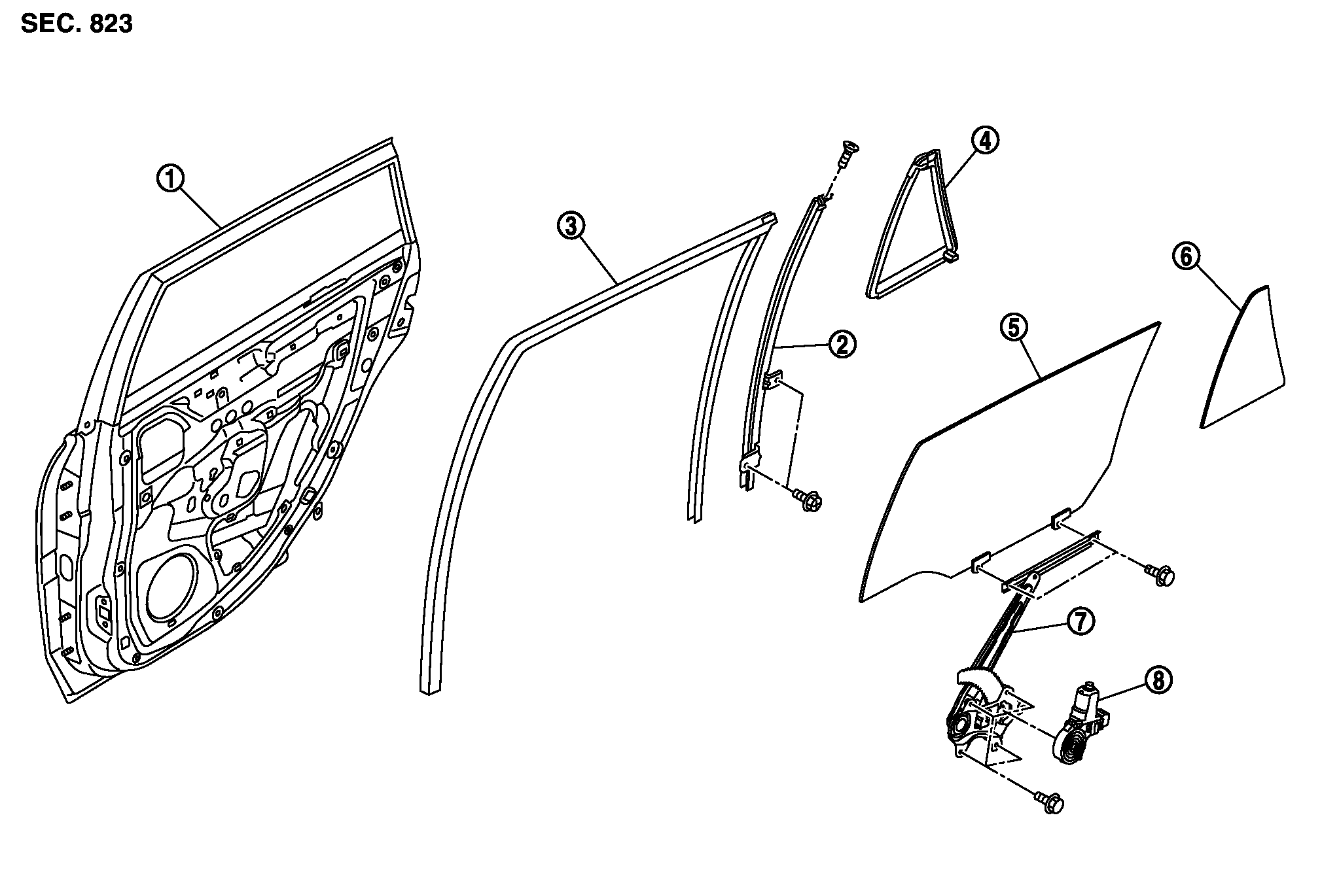 - 9.ドアガラスを上方に引き抜いて取り外す。