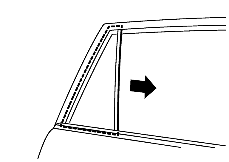 シーリングスクリーンを再使用する場合、シーリングスクリーン側ブチルテープが残るようにブチルテープをカッターで切断する。- 5.ドアガラス取付ボルトを外す。