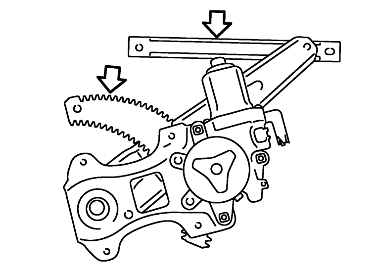 - 8.取付ボルトを外し、レギュレーターASSYをドアパネルから取り外す。