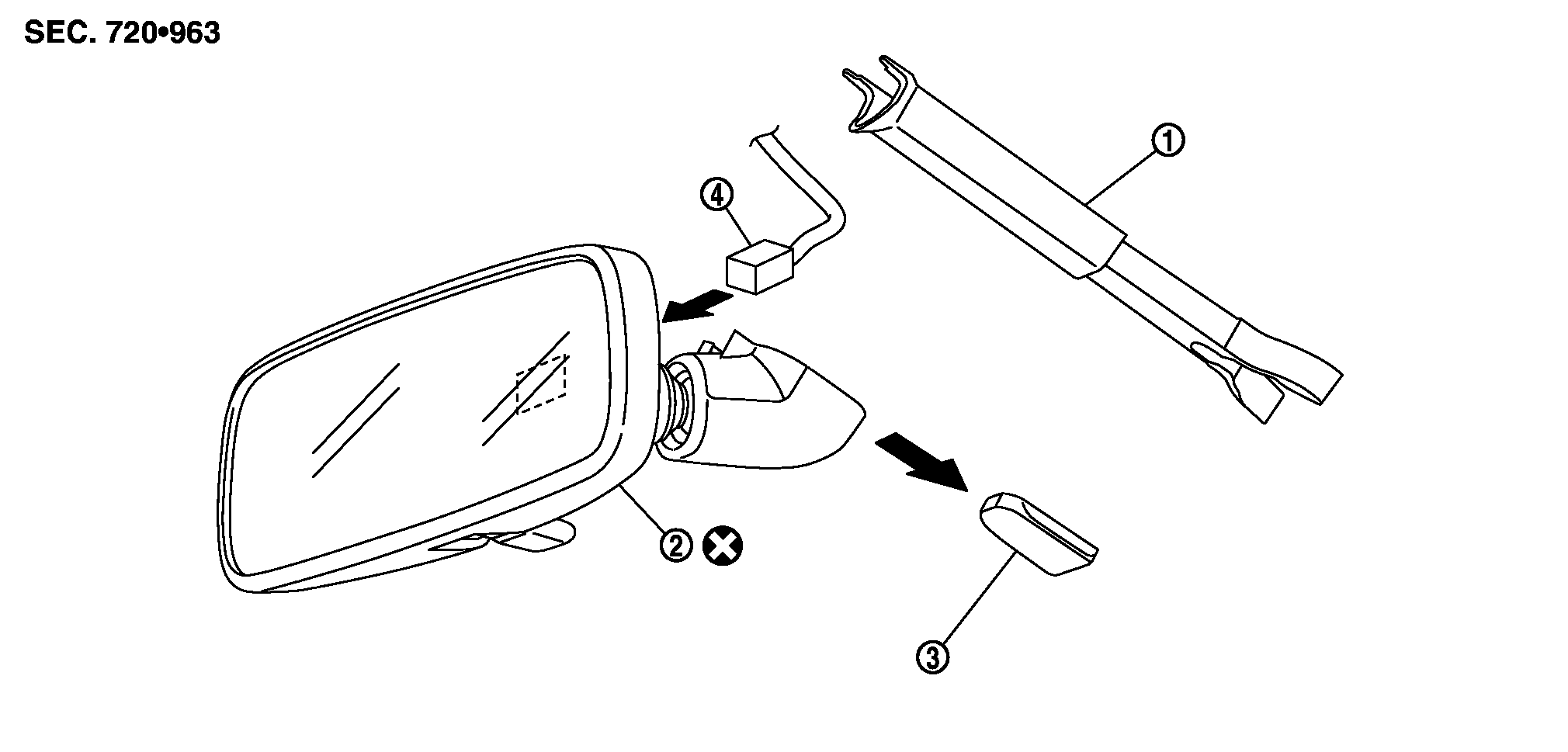 ミラーベースから1度取り外したインサイドミラーは再使用しないこと。