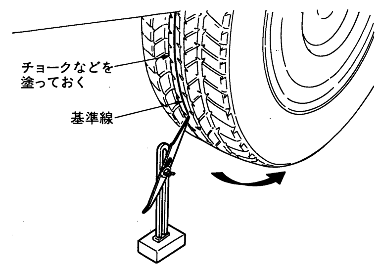 | [測定値:0° 09′(0.15°)、タイヤ外径:600 mmの場合] |