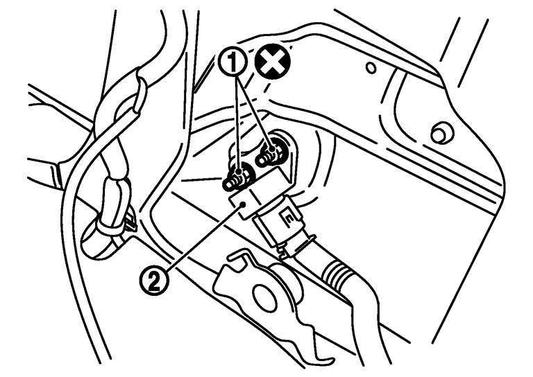- 3.ハーネスコネクタを外し、サテライトセンサ(2)を取り外す。