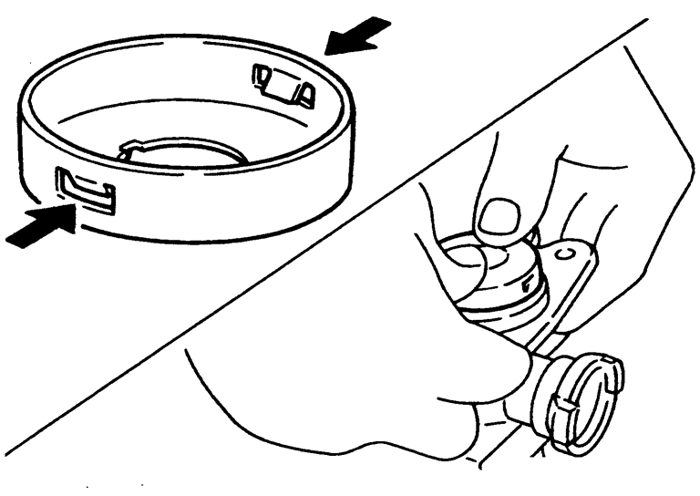 - 2.ストッパーキャップでピストンを押さえながら、ストッパーキャップのツメがシリンダーボディーの溝に掛かるまで確実に押し込み、取り付ける。