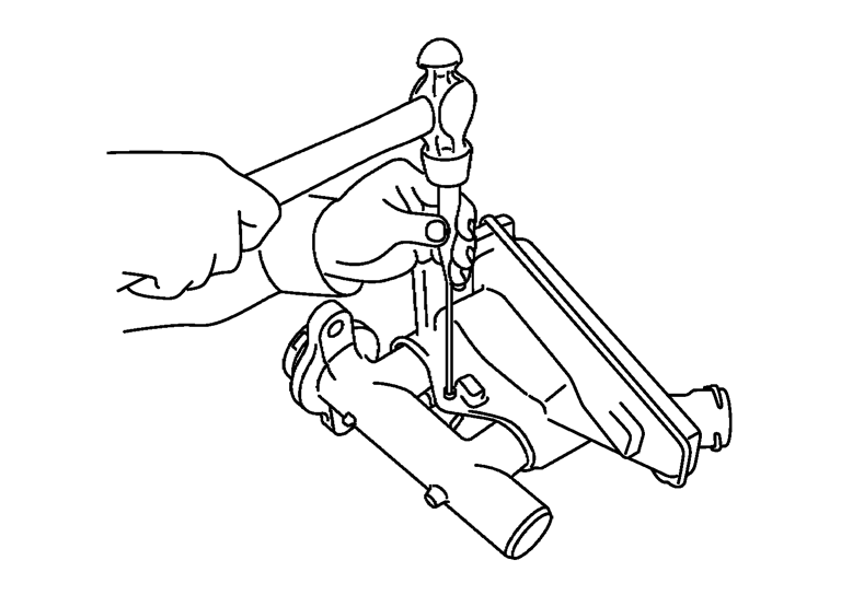 - 1.図のようにマイナスドライバーを用いて、ストッパーキャップのツメを起こし、マスターシリンダーよりストッパーキャップを取り外す。