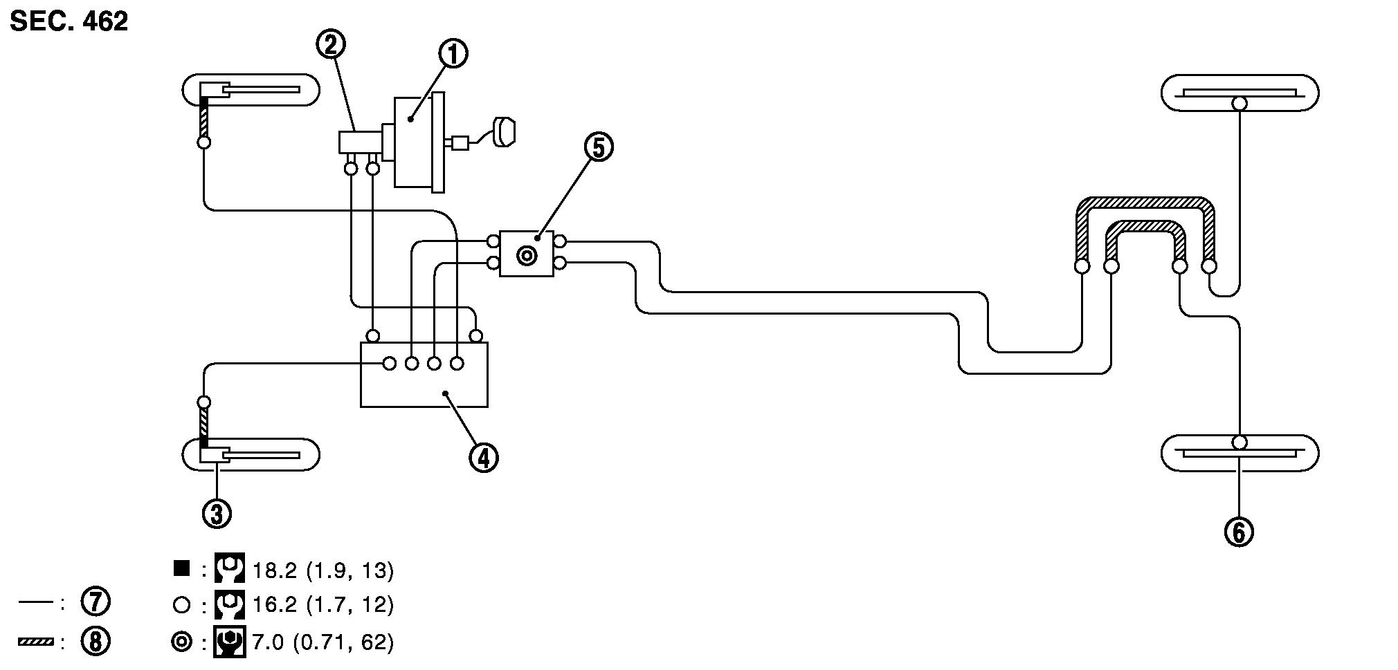 - ブレーキチューブの取り外しは、フレアナットレンチを用いて行い、フレアナット及びブレーキチューブに傷を付けないよう作業すること。また、取り付ける際は、フレアナットトルクレンチを用いて規定トルクで締め付けること。