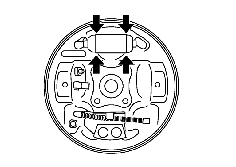 測定箇所: ライニング当り面(中央部)基準値 標準内径(新品時) 2WD車 : φ 203.0 mm 4WD車 : φ 228.6 mm 限度内径 2WD車 : φ 204.5 mm 4WD車 : φ 230.0 mm - ホイールシリンダーからの液漏れを点検する。