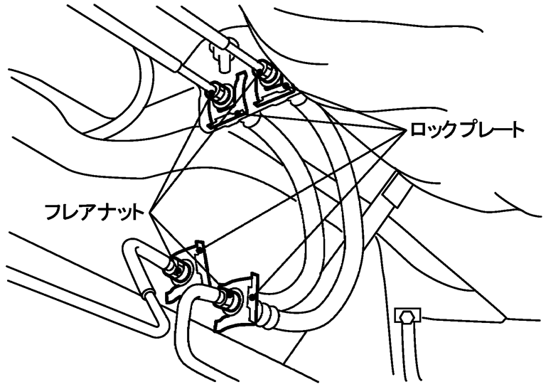 - 接続部にフルードの漏れが発生した場合は、規定トルクで締め直すか、異常があれば損傷した部品を交換すること。