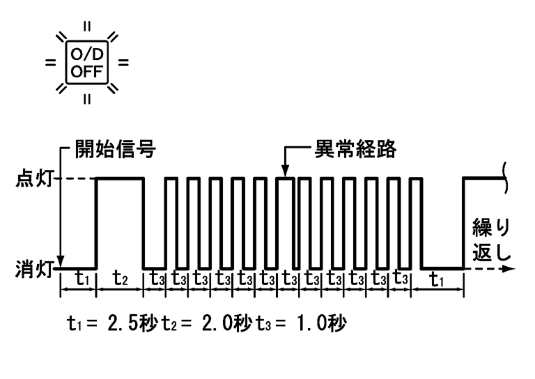O/D OFF表示灯の表示 異常がある場合、その経路の点灯時間を長く表示する。