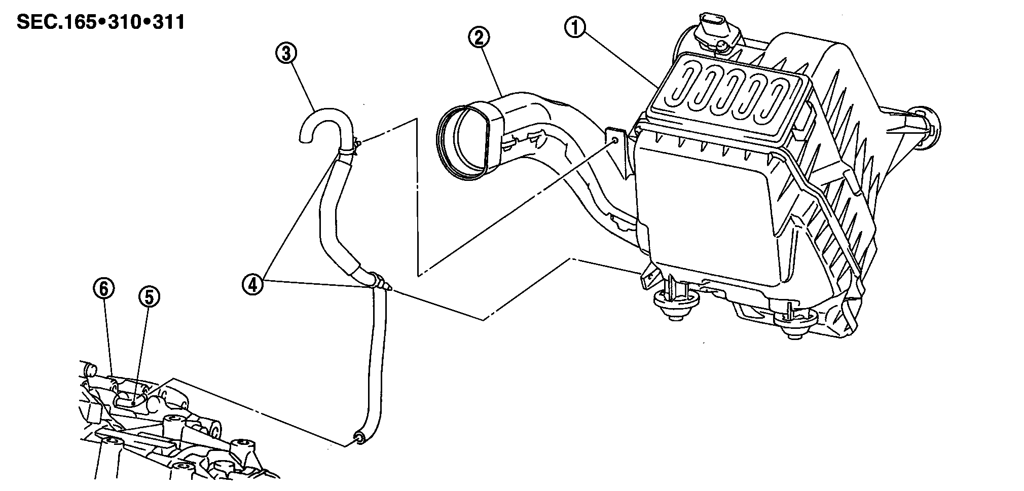 2.エアダクト(外気導入側)、エアダクト及びエアクリーナーケースを取り外す。