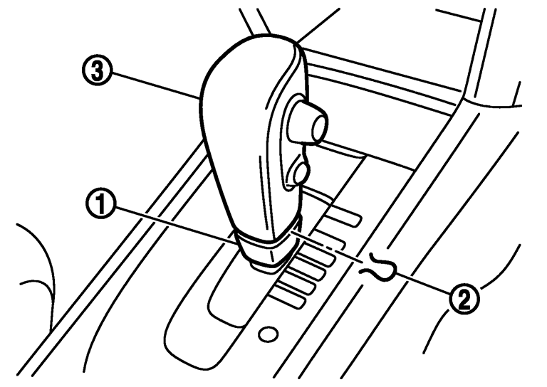 2.セレクトレバーのノブカバー(1)を下側に下げる。