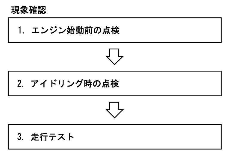 - 現象が発見されるまで、全ての点検項目をテストする。NGになった項目は「診断シート例」に記入し、全てのロードテスト終了後に診断を行う。故障診断の進め方を参照する。