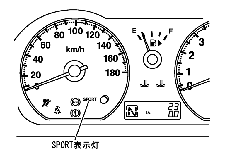 - アクセルペダルを戻し、スポーツモードスイッチを押す。(スポーツモード状態)