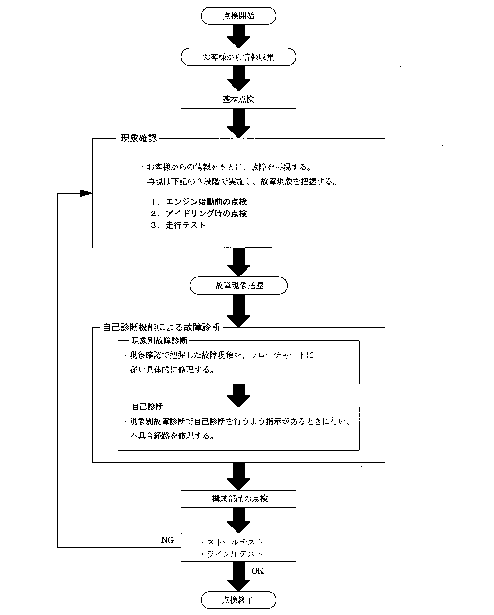 | 5 | □自己診断NG項目について各系統を点検し不具合部品を修理又は交換する。 | ||||