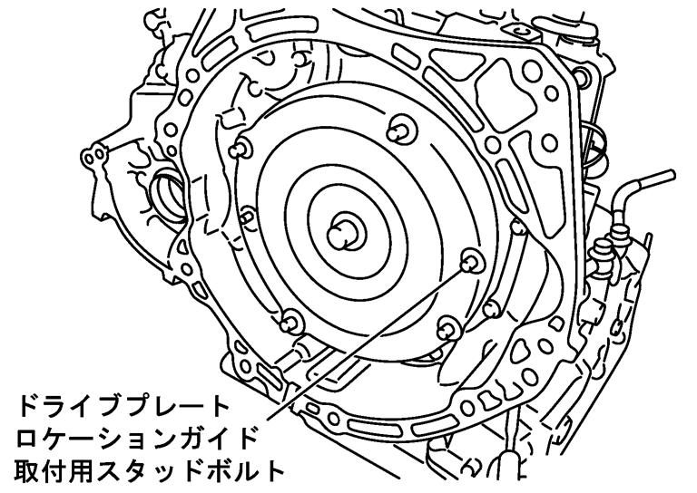 - 下記の要領でトルクコンバーターをドライブプレートに組付ける。