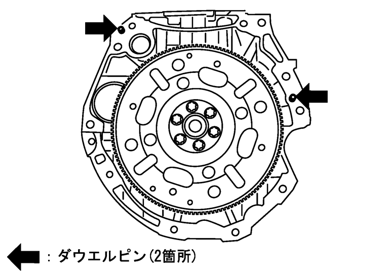 - トランスアクスルASSYをエンジンASSYに取り付ける際は、ダウエルピンのかん合を確認すること。