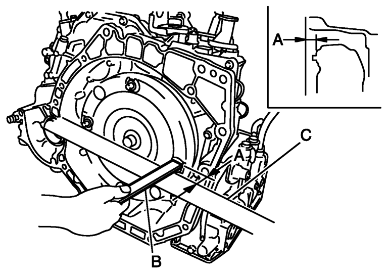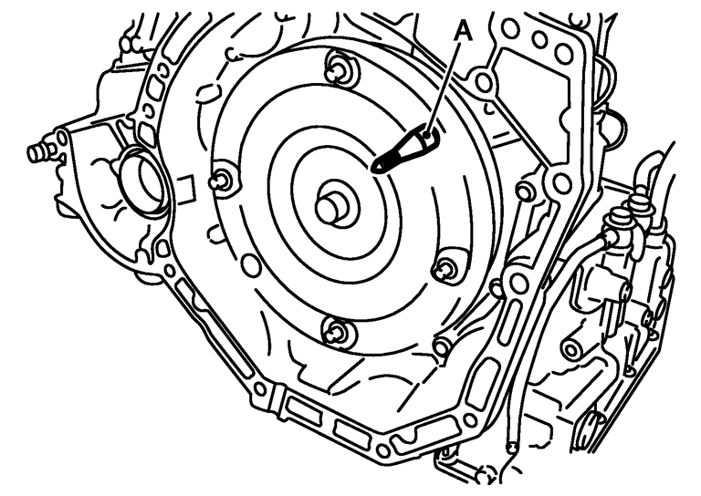 - トルクコンバーターのドライブプレートロケーションガイド取付部にドライブプレートロケーションガイド(31197 EU50A)(A)を取り付ける。