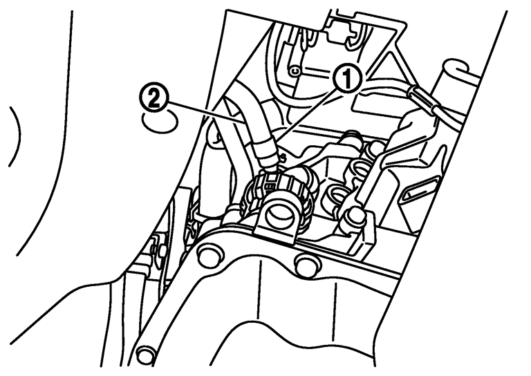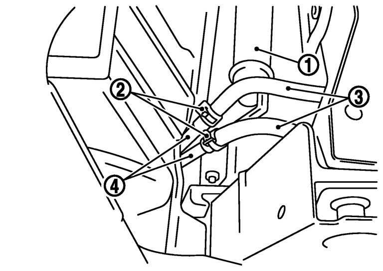 - 6.CVTフルードクーラーチューブを車両より取り外す。