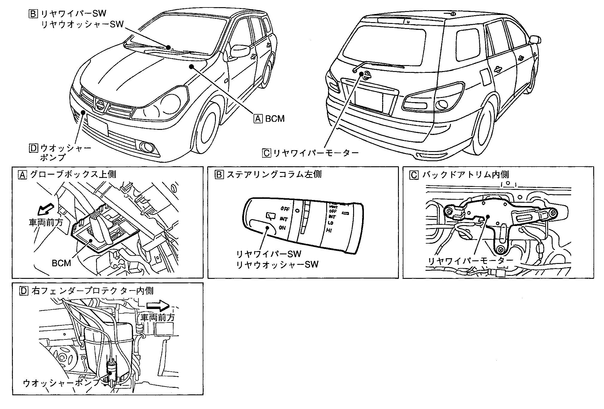 | アクティブテスト | リヤワイパーモーターに駆動信号を与えて作動点検を行う。 |