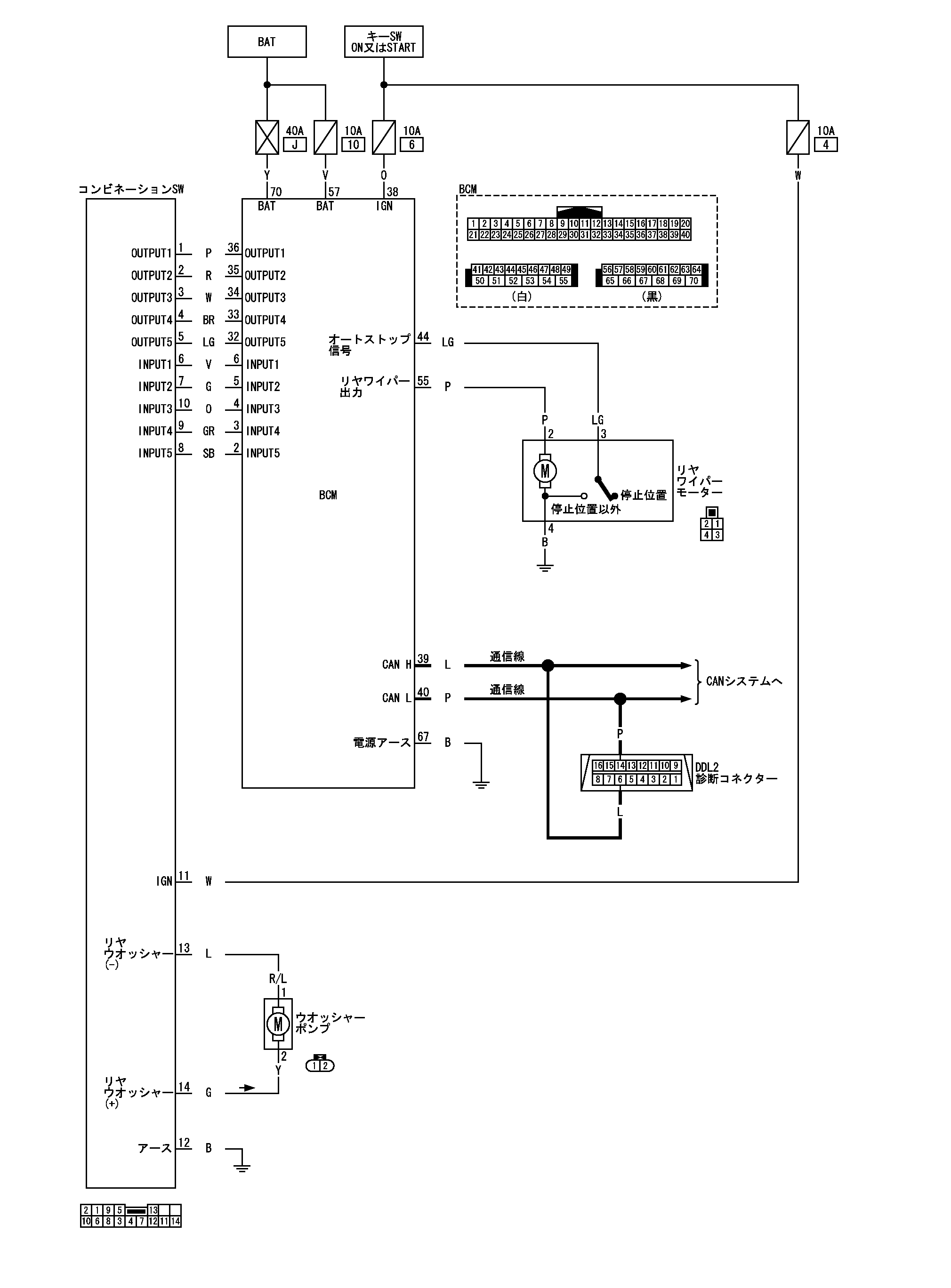 | リヤワイパ | On | リヤワイパモーターへ電源供給を行い、リヤワイパーを作動させる。 |