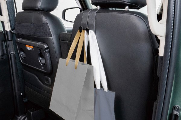 Переходим к EXEA, бренду, который с 1990-х специализируется на "умных" мелочах для авто, вдохновленных эргономикой японских поездов. Их Double Bend Hook (EE-45) — бюджетный герой за 640 йен. Два параллельных хука на компактной основе, которая фиксируется на штанге подголовника диаметром 14 мм (в комплекте спейсер для 12 мм). Это значит, что он подойдет почти к любому современному автомобилю, от компактных Nissan Note до внедорожников Toyota RAV4. Дизайн простой, как у скандинавской мебели: никаких лишних деталей, но стабильность на высоте — сумки не качаются, даже если вы маневрируете в пробке.