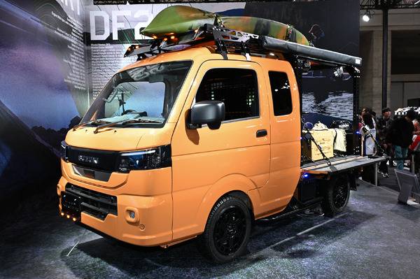 Концепт Work & Play Pro воплощает идею "работа и отдых в одном флаконе". База — обновлённый Super Carry, но с доработками от Hard Cargo, бренда, стартовавшего в 2017 году с акцентом на прочность и транспортные возможности для kei-trucks. Здесь добавили элементы, которые делают грузовик "базовым лагерем" для кемпинга или морских приключений: усиленный кузов, аксессуары вроде боксов с логотипом Jimny (ещё один хит Suzuki для off-road) и цвет Tool Orange — яркий оранжевый, который в 2025 году дебютировал в линейке компании. Чёрные колёса добавляют контраста, намекая, что это не просто инструмент, а стильный аксессуар.
