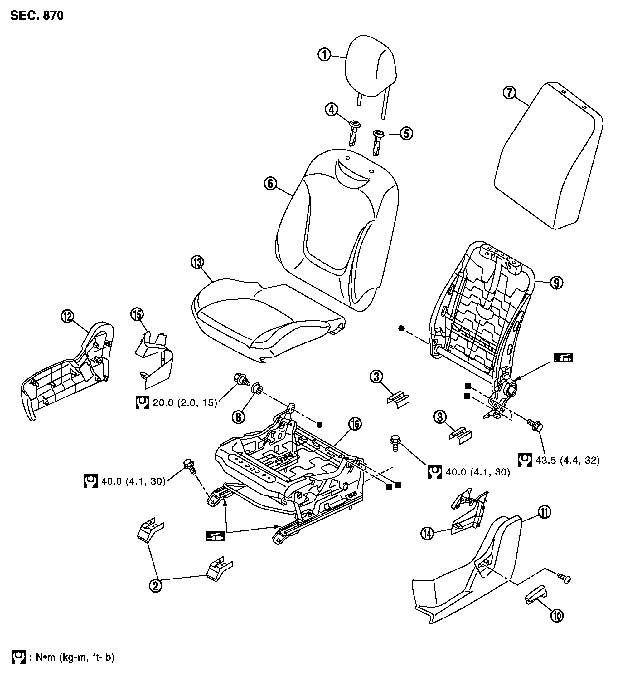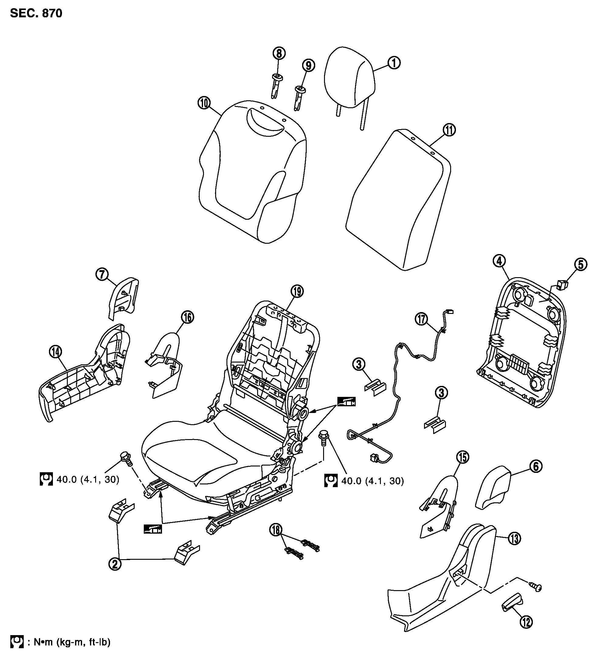 助手席テーブル付きシートは、シートフレーム&アジャスタASSYからシートクッションパッド&トリムを取り外さないこと。
